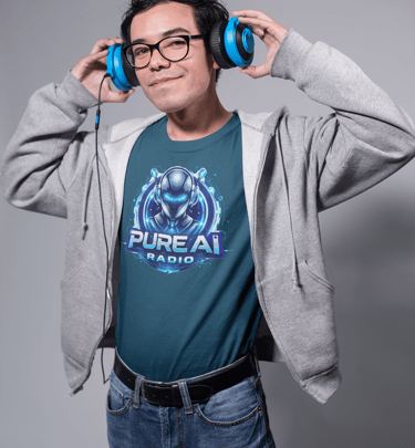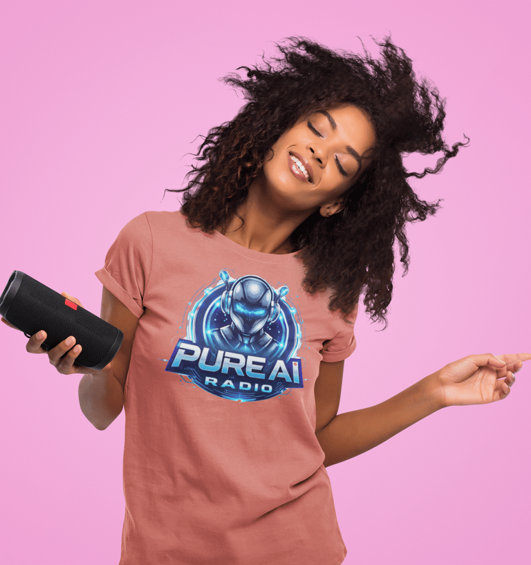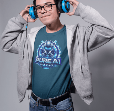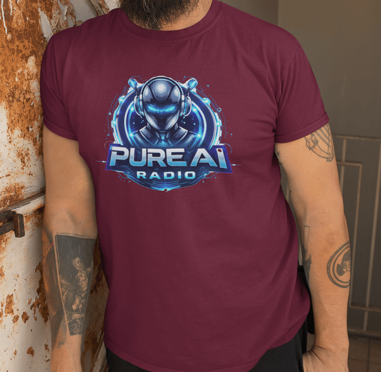 If you are a contributing AI artist on Pure AI Radio and you have a brand or want to start your own merchandise collection then speak to our Station Manager for more details. For as little as a $250 setup fee (5 items of apparel) and a small commission on each item, you can have your own collection ready for sale on this Merchandise Store. Customers select their shirt size and colour, order and we do the rest. Tees are printed and sent direct to the buyers address, worldwide.
